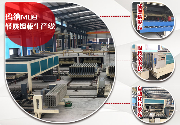 針對輕質(zhì)隔墻板加工生產(chǎn)過程中出現(xiàn)的勞動強度大,生產(chǎn)成本高,沒有實現(xiàn)自動化生產(chǎn)及存在安全隱患等問題,瑪納公司提供一種全自動輕質(zhì)隔墻板生產(chǎn)線M09輕質(zhì)墻板生產(chǎn)線,新型輕質(zhì)隔墻板設備價格?瑪納生產(chǎn)線投資幾十萬到幾十萬不等,該生產(chǎn)線是在瑪納研制的機動成組立模墻板成型工藝的基礎上,經(jīng)過技術升級創(chuàng)新,研制出的新型輕質(zhì)墻板生產(chǎn)線,該生產(chǎn)線具有質(zhì)量可靠,投資回報率高,能夠實現(xiàn)自動化生產(chǎn),節(jié)約了大量人力物力,避免了輕質(zhì)隔墻板加工生產(chǎn)過程中出現(xiàn)的勞動強度大,生產(chǎn)成本高,沒有實現(xiàn)自動化生產(chǎn)及存在安全隱患等問題。