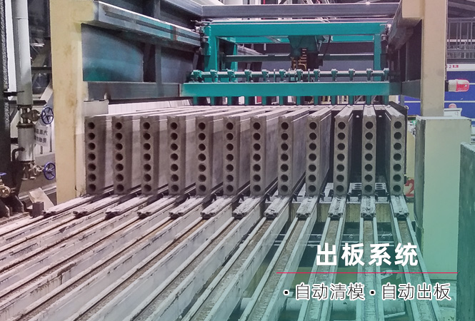 3) 推板清模機(jī):一次性將立模機(jī)內(nèi)的12塊墻板推出,并能自動將立模隔板清理干凈。