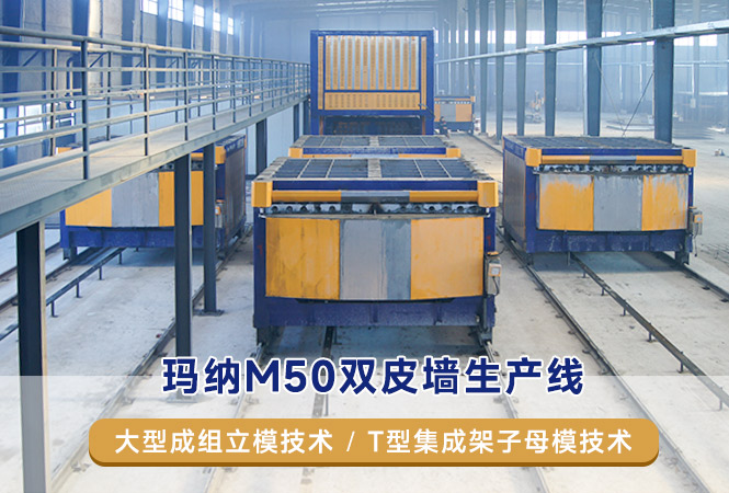 預(yù)制裝配式殼板品種繁多,結(jié)構(gòu)復(fù)雜,精度要求高,現(xiàn)有傳統(tǒng)的工藝裝備均無法滿足其生產(chǎn)需要,瑪納公司于2013年開發(fā)的子母模工藝裝備生產(chǎn)線,完好的解決了墻板板殼的工業(yè)化制造難題,為墻板板殼的推廣、應(yīng)用奠定了基礎(chǔ)。