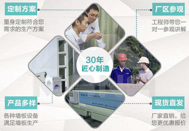 石膏墻板的出現(xiàn)滿足了人們對(duì)新型墻體的需求,其生產(chǎn)線投資也是從幾十萬到幾百萬不等,瑪納公司始終堅(jiān)持團(tuán)結(jié)協(xié)作、合作共贏的原則,贏取了廣大客戶的信賴與支持,更多詳情可撥打我們公司24小時(shí)熱線或到廠參觀考察,我們會(huì)安排專人接待,全程詳細(xì)講解。