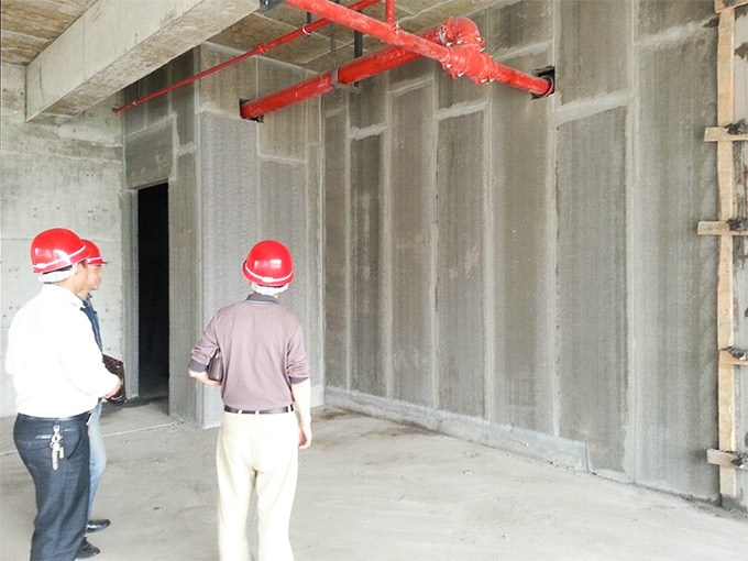①采用專門設(shè)備將復(fù)合設(shè)計(jì)要求的隔墻板運(yùn)送施工現(xiàn)場,采用叉車進(jìn)行平面運(yùn)送施工。