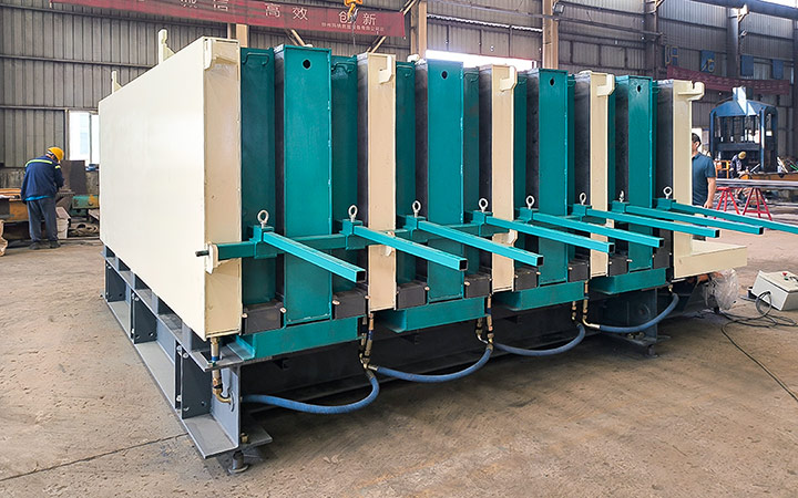 成組立模即將若干模板豎直放置,通過立式模板的移動形成若干空腔,經(jīng)澆筑、振搗、養(yǎng)護成型的預(yù)制混凝土構(gòu)件生產(chǎn)裝備。