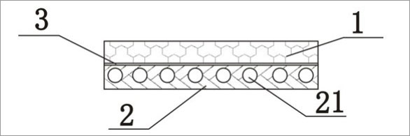 圖中標(biāo)號(hào):1、保溫板;2、石膏板;3、固體建筑膠;21、圓形通孔。