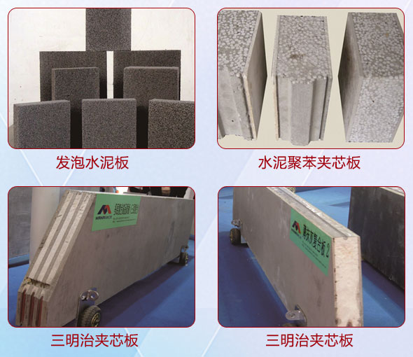 M08復(fù)合保溫生產(chǎn)線可生產(chǎn)的板材有硅酸鈣板水泥聚苯夾芯板、水泥壓力板水泥聚苯顆粒夾芯板、玻鎂板水泥聚苯顆粒夾芯板、發(fā)泡水泥板、三明治夾芯板等等。
