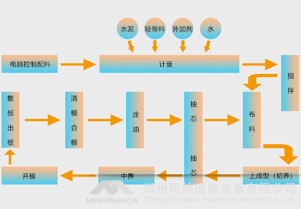 M09輕質(zhì)墻板生產(chǎn)線整體技術(shù)采用MANA公司自主創(chuàng)新研制開(kāi)發(fā)的新型成組立模技術(shù)裝備(系原始技術(shù)創(chuàng)新開(kāi)發(fā),獲得MN級(jí)技術(shù)鑒定),采用立模法機(jī)組流水工藝生產(chǎn),使用瑪納多項(xiàng)MN技術(shù)做支撐,擁有完全的自主知識(shí)產(chǎn)權(quán),主要滿足用戶大規(guī)劃、高品質(zhì)、高度機(jī)械自動(dòng)化的產(chǎn)品需要,是目前國(guó)內(nèi)外最先進(jìn)的成組立模法生產(chǎn)墻材的裝備。