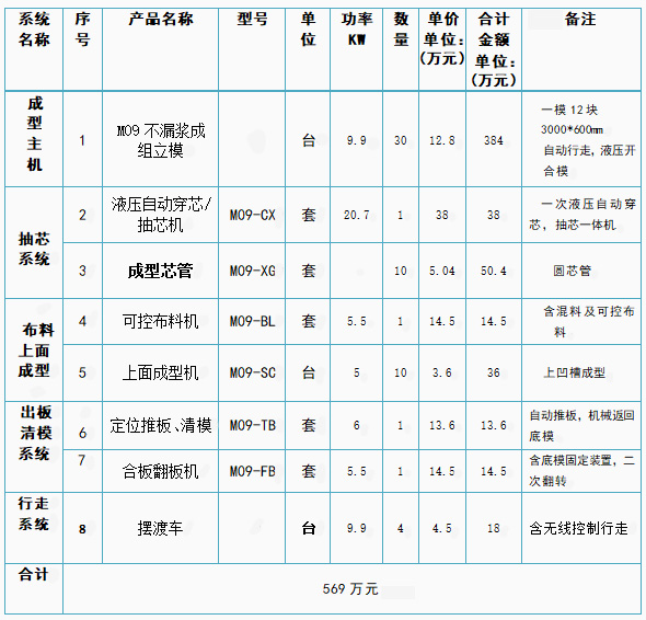 M09輕質(zhì)墻板自動(dòng)化生產(chǎn)線-年產(chǎn)50萬(wàn)㎡-報(bào)價(jià)表